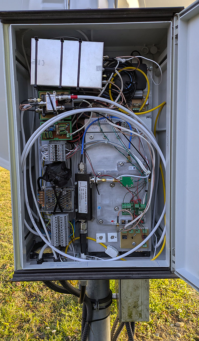 Alle Teile sind im Schaltschrank direkt am Parabolspiegel untergebracht.