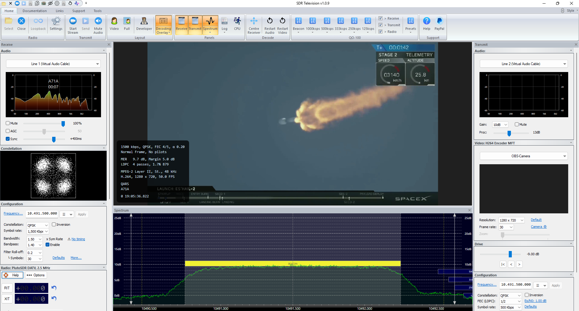 Bild: Alternativ mit SDR-Television 1.0.9 als Sende- und Empfangsprogramm.