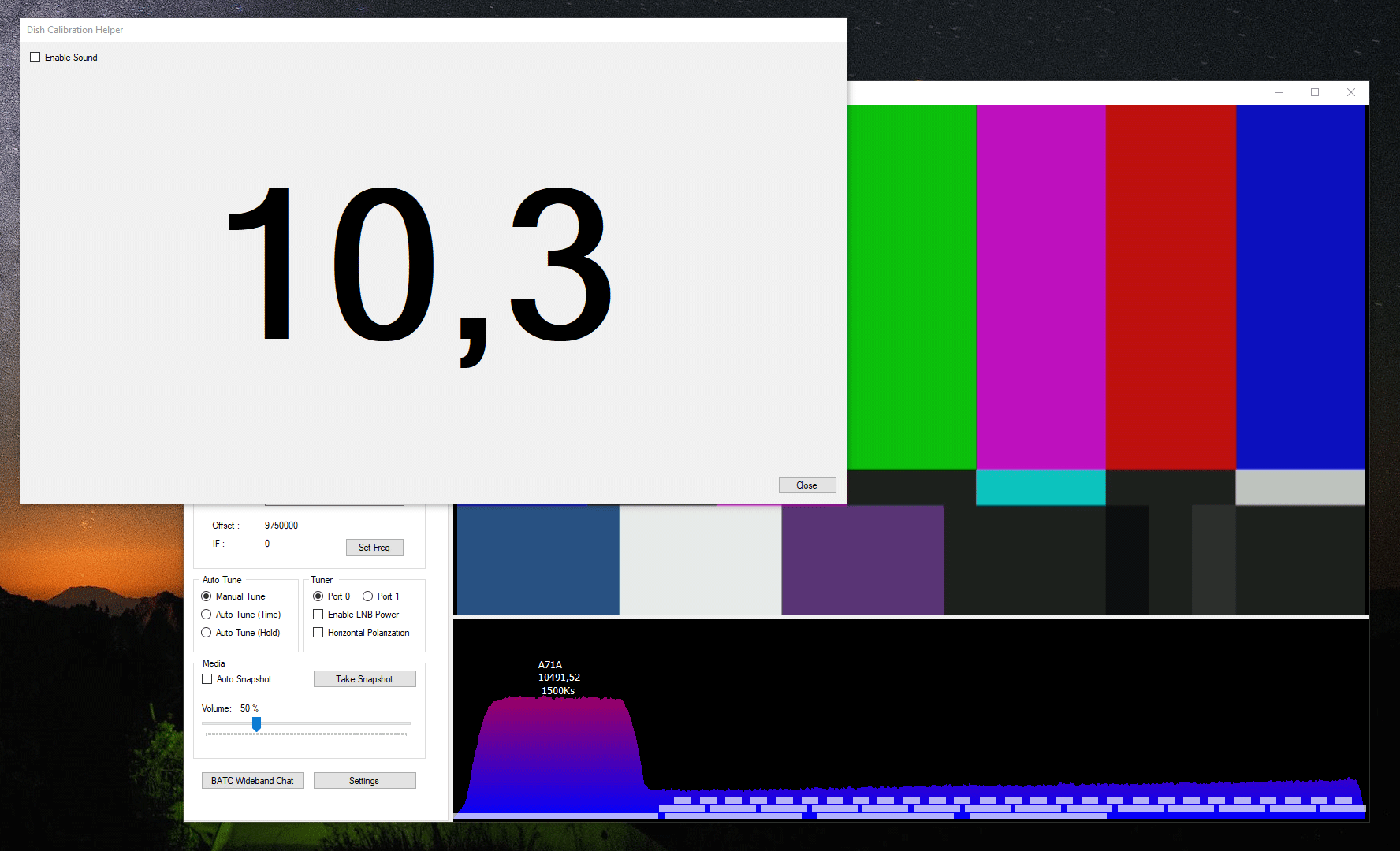 Die POTY-Antenne von Wolfgang, DC2TH haben wir im Parabolspiegel getestet und beim Empfang 1,0 dB bessere Werte erhalten. Die POTY erreicht den gleichen Empfang wie ein nacktes Bullseye-LNB.