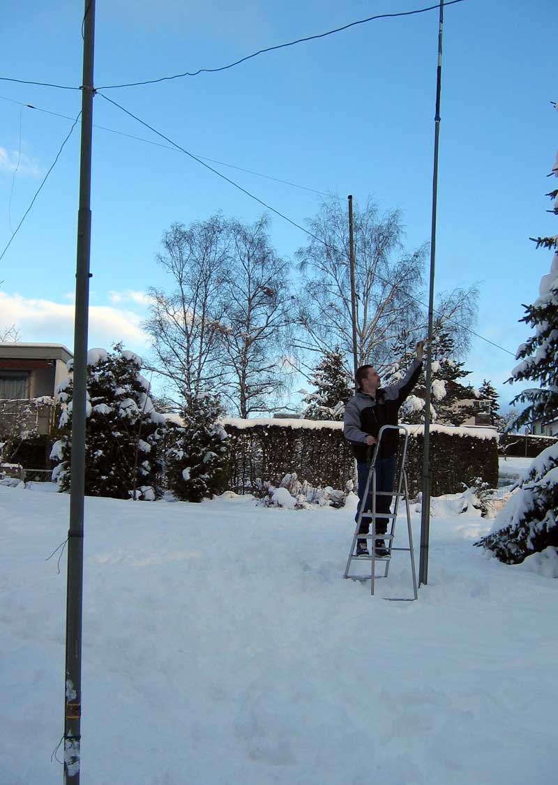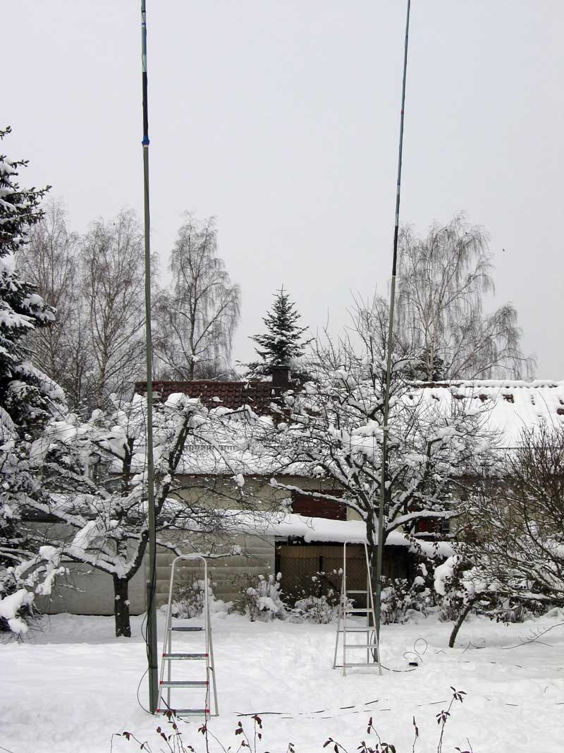 Ich habe zwei Groundplane Antennen für 40m in einem Abstand von 6 Metern errichtet und mit jeweils 4 Radialen versehen.