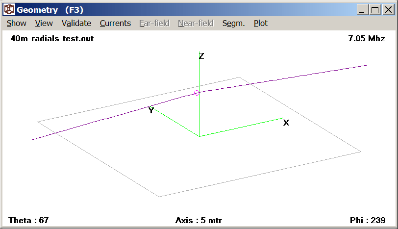 Eine der Abweichungen ist der Einfluss der Isolation des Drahtes auf die notwendige Länge. In diesem Modell eines Dipols bestehen aus zwei Radialen einer der späteren Groundplane-Antennen besteht ein wesentlicher Unterschied ob der Draht isoliert ist oder nicht. Hier der Reaktanzverlauf über die Länge eines Dipols bestehend aus zwei gegenüberliegenden Radial-Drähten bei einer Frequenz von 7,00 MHz. Der Draht hat jeweils einen Durchmesser von 1,4 mm und in einem Fall eine PVC-Isolation (εr=5) mit einem Durchmesser von 3 mm. Die Erforderliche Länge für eine Reaktanz von X=0 bei 7,00 Mhz verkürzt sich von 10,3 m auf nur 9,89 m. Dabei ist der Einfluss des Bodens in beiden Fällen schon eingerechnet. Eine Messung mit einem MFJ-269 Antennen-Analysator bestätigt dieses einwandfrei und exakt. Ein besondere Dank gilt hierbei L. B. Cebik (W4RNL) welcher in seinen Untersuchungen die Grundlage für die Einarbeitung in ein elektronisches Modell legte. NEC-4.1 kann jetzt auch selbst mit Verlust behafteten Dielektrikum ummantelte Drähte berechnen.
